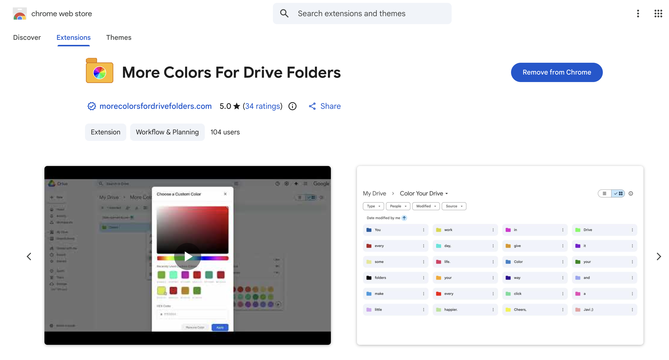 Browser extension that lets you customize Google Drive folders with any color you want.