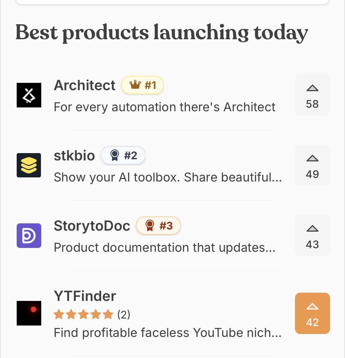 I built this SaaS to help a friend I just launched it on Uneed And I'm almost in 3rd place Even though I didn't think I'd even get 10 upvotes Come vote too 馃憞 uneed.best/tool/ytfinder