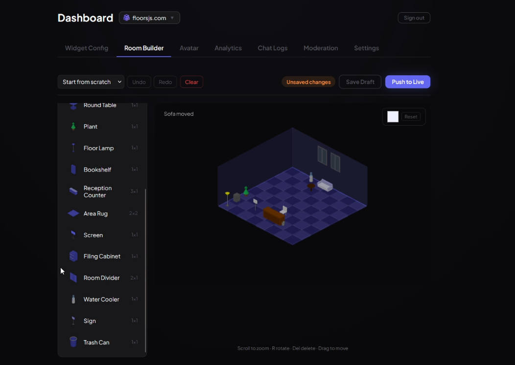 β customise your 3d room, add your branding & turn your visitors into customers by talking with them π